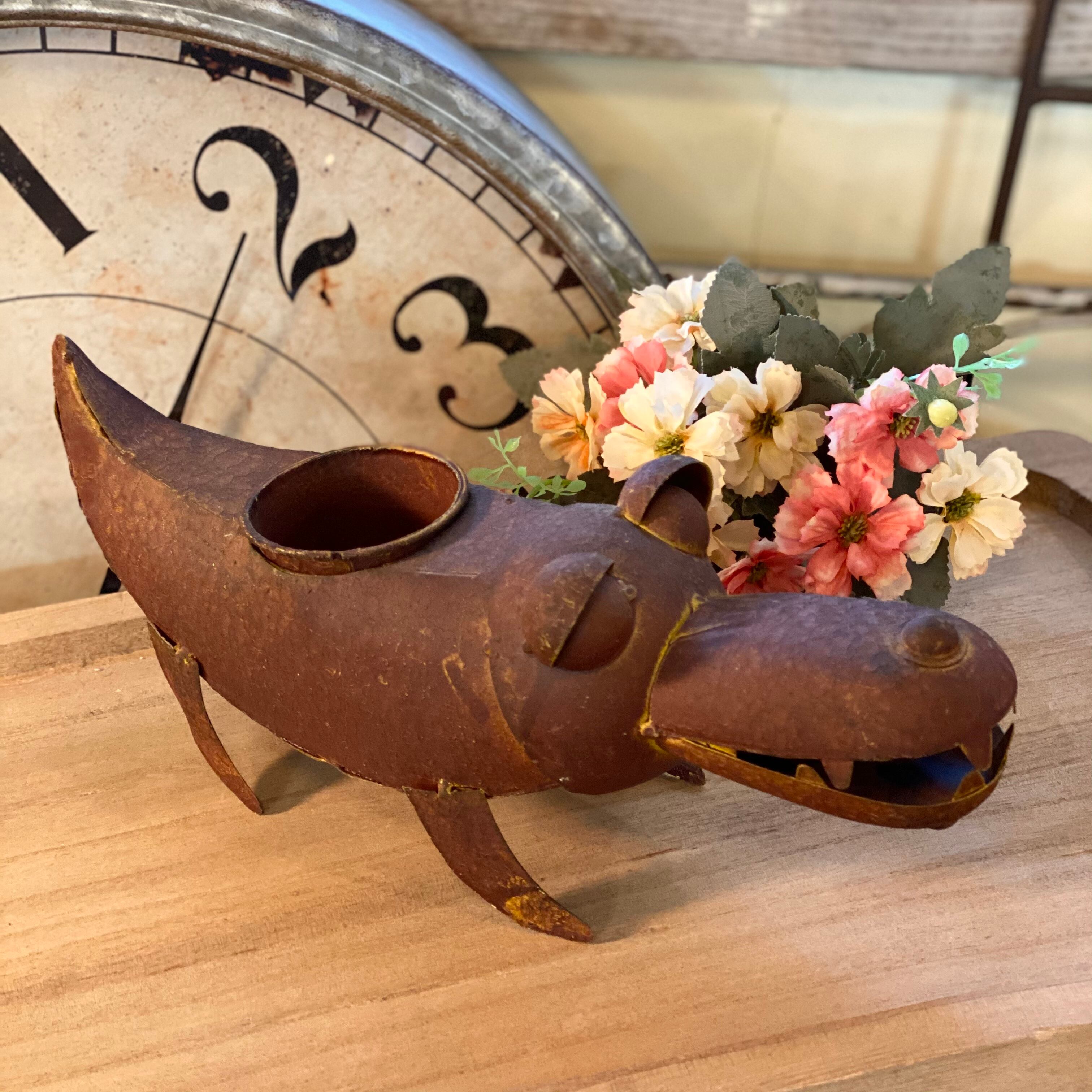 なんだかおとぼけた表情が可愛すぎるクロコダイルのプランターになります♫