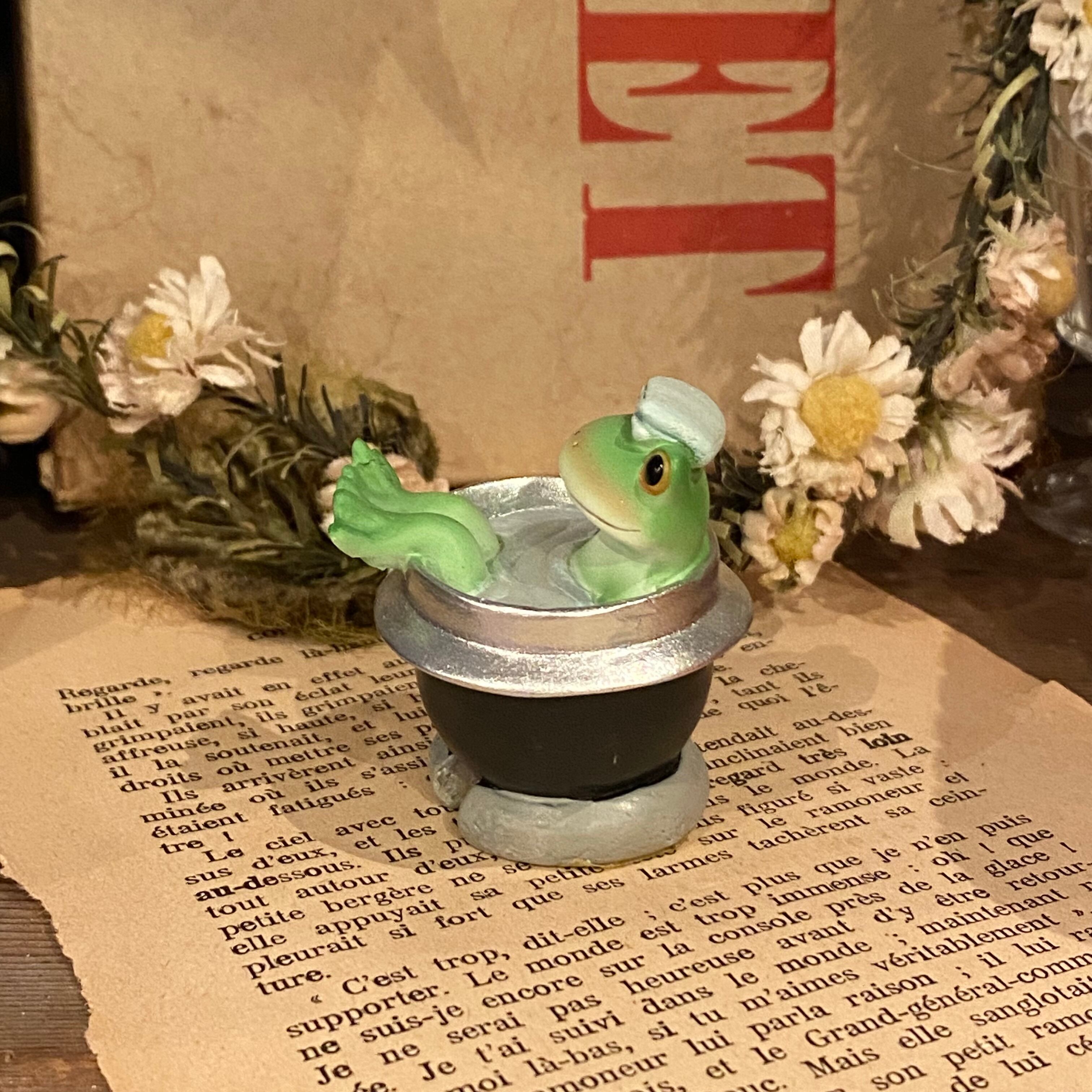 いいお湯加減のお風呂にほんのり赤いほっぺたがかわいいカエルさん♫